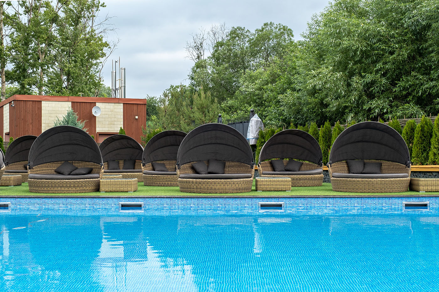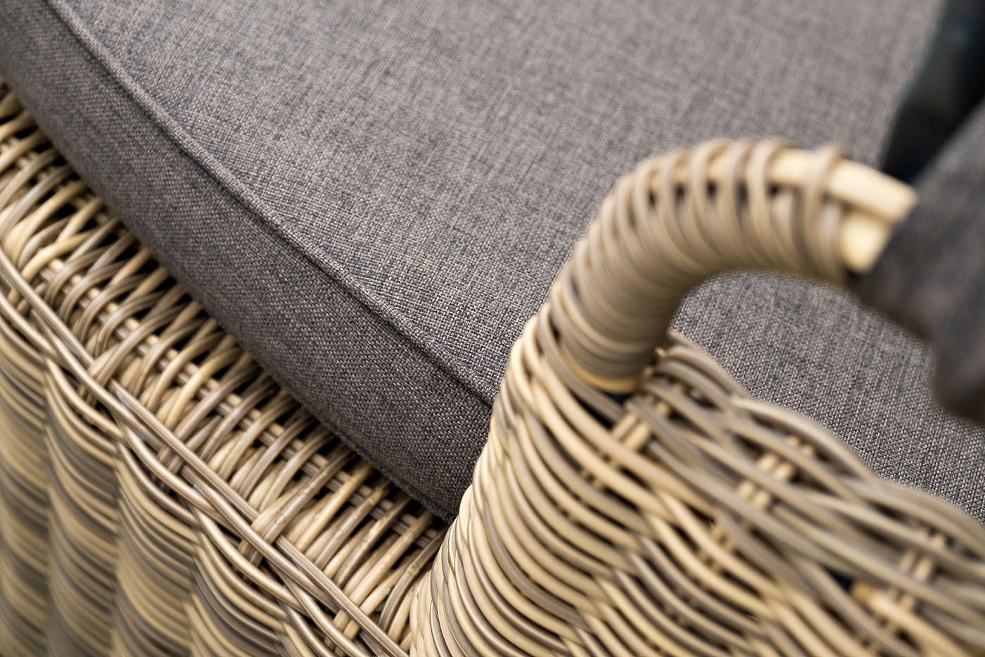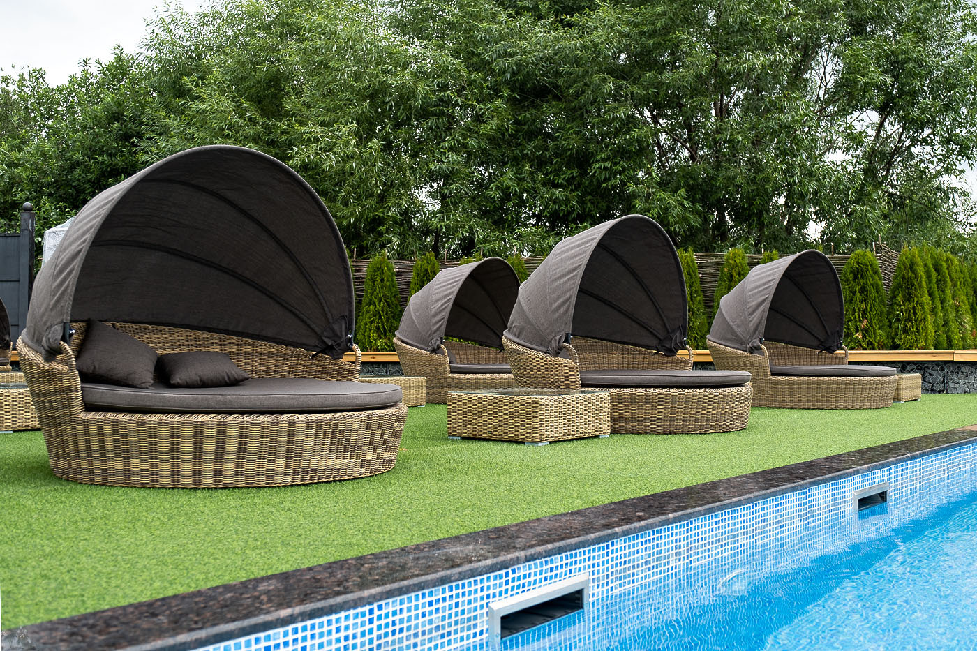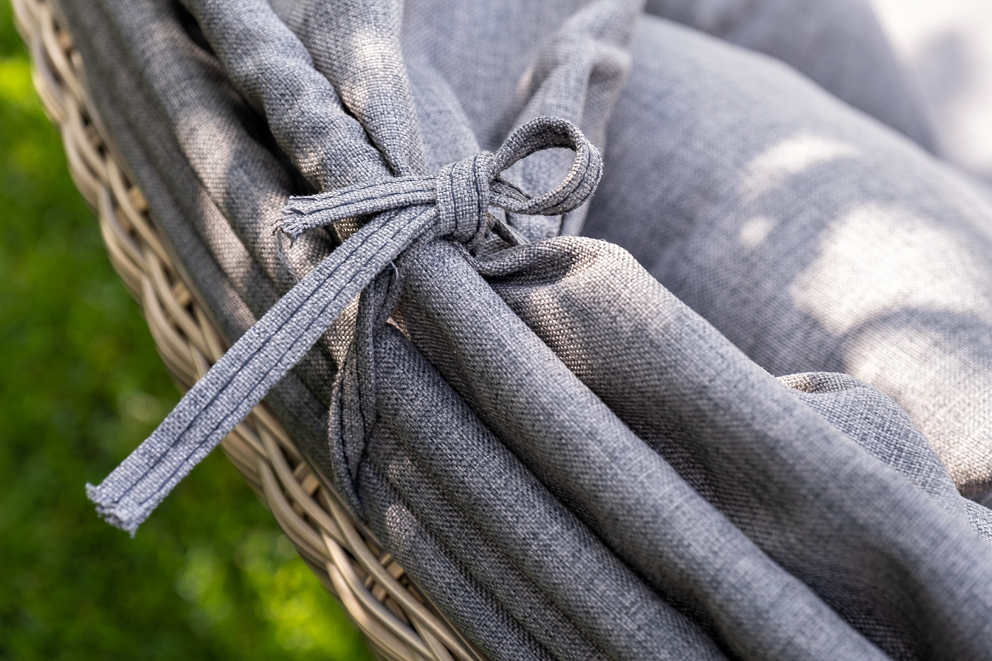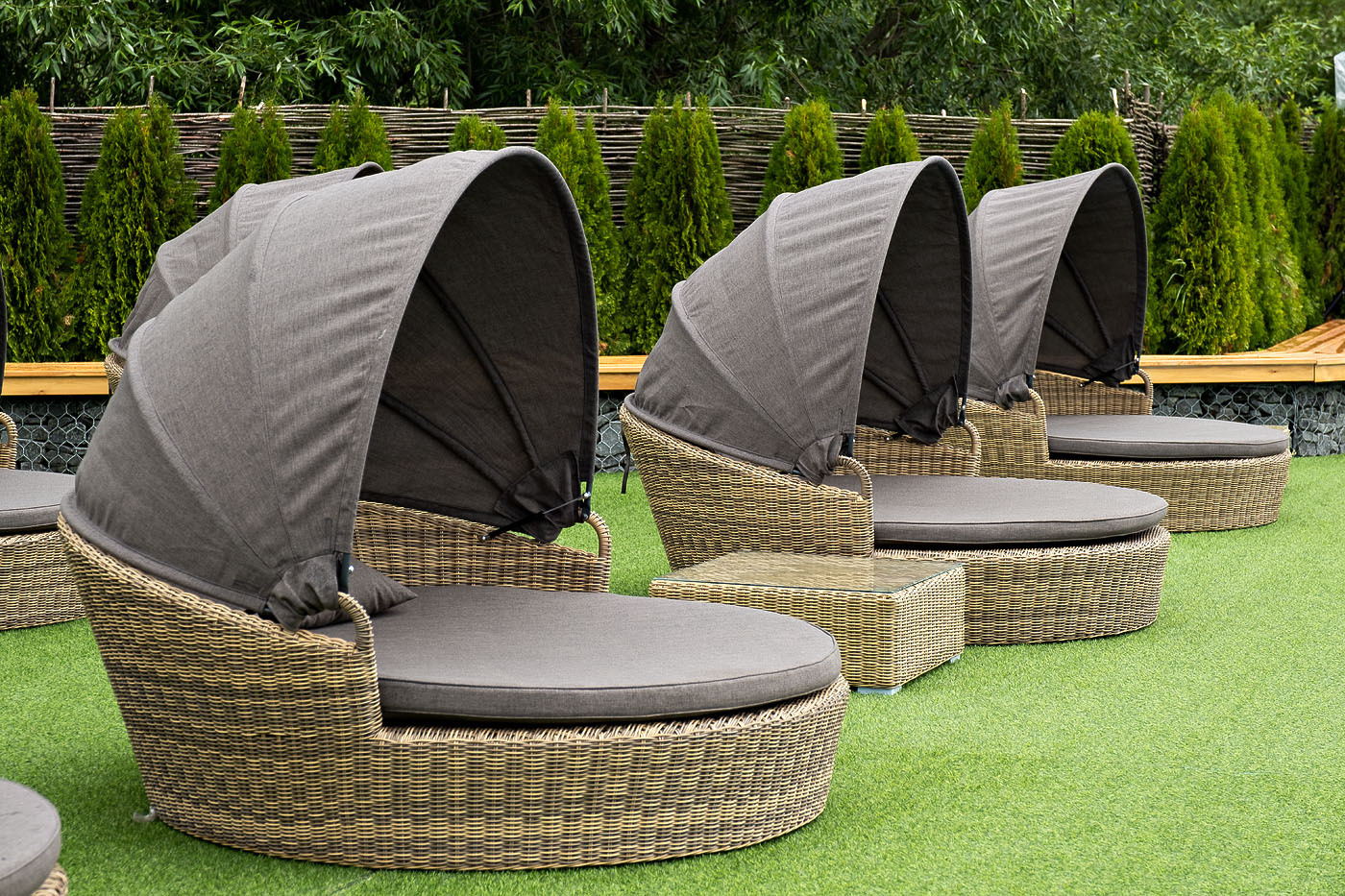 «Стильяно» - кровать из искусственного ротанга круглой формы. Она идеально подойдет для использования на открытом воздухе, в том числе и возле бассейна. Имеет соломенный оттенок. Данная модель имеет в основании прочный алюминиевый каркас, оплетенный вручную круглым ротангом и оснащена регулируемым козырьком, который ограничивает попадание солнечных лучей. Выполнен из водостойкой полиэфирной ткани. Мягкий матрас имеет съёмный чехол серого цвета состоящих из высококачественного полиэстера с водоотталкивающей пропиткой, подлежит машинной стирке. Диаметр кровати составляет 1850 мм, а высота 800 мм. Комплектацией предусмотрен набор из четырех серо-коричневых подушек - 450х450 мм и одного матраса - Ø1600 мм, высотой 60 мм.Бренд | 4SIS |