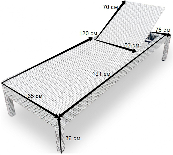 Шикарный вариант шезлонга с возможностью регулирования положения спинки. Лежак выполнен из волокна rammus, что дает ему ряд преимуществ: не покрывается чешуйками, не расслаивается и не растрескивается при разнице температур -50 до +80°С; не меняет природный естественный цвет и фактуру под влиянием ультрафиолета, осадков и частиц пыли; поверхность устойчива к действию моющих средств; высокая износоустойчивость экомебели не менее трех десятилетий гарантирована инновационной формулой производства.Характеристики