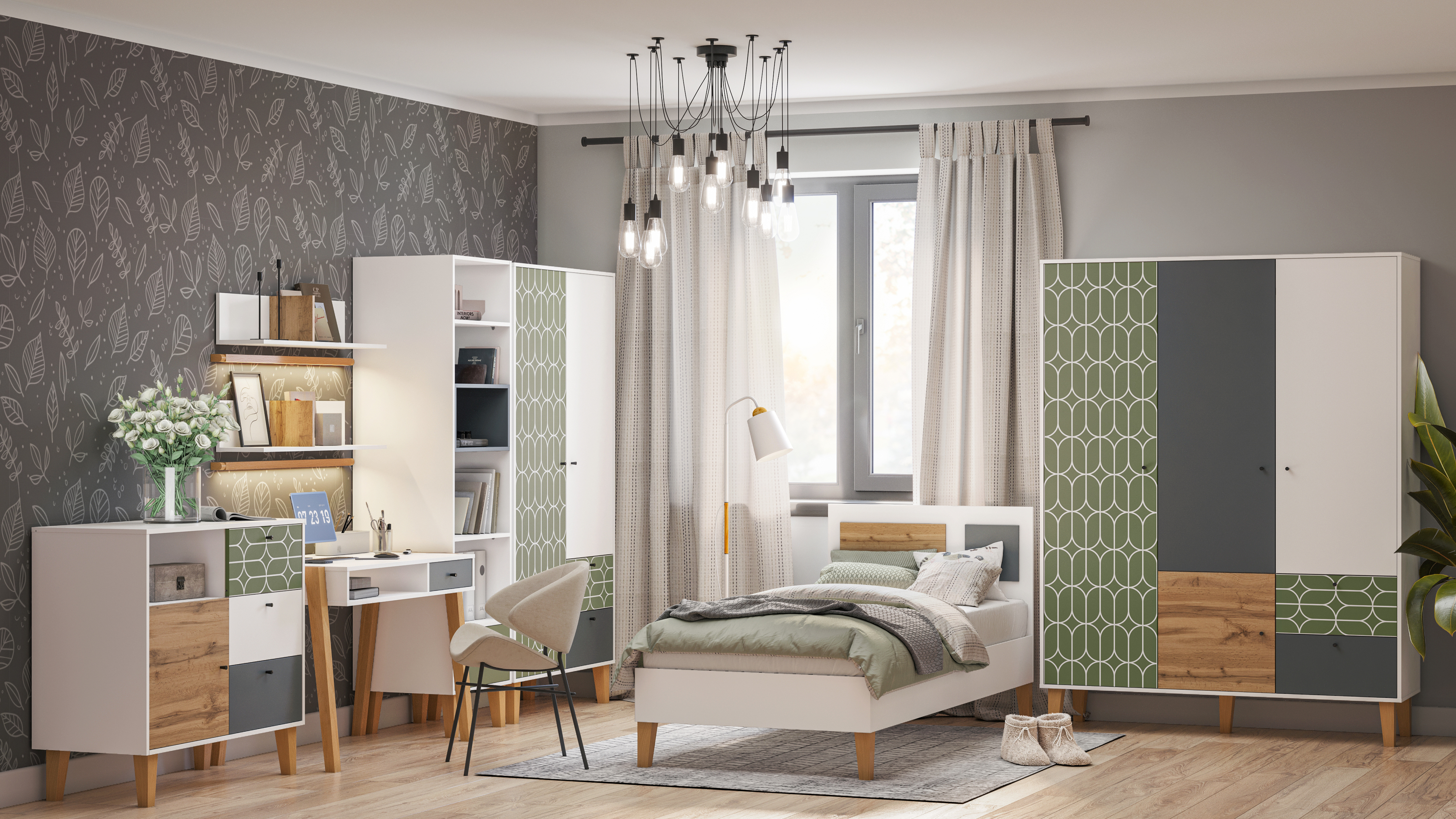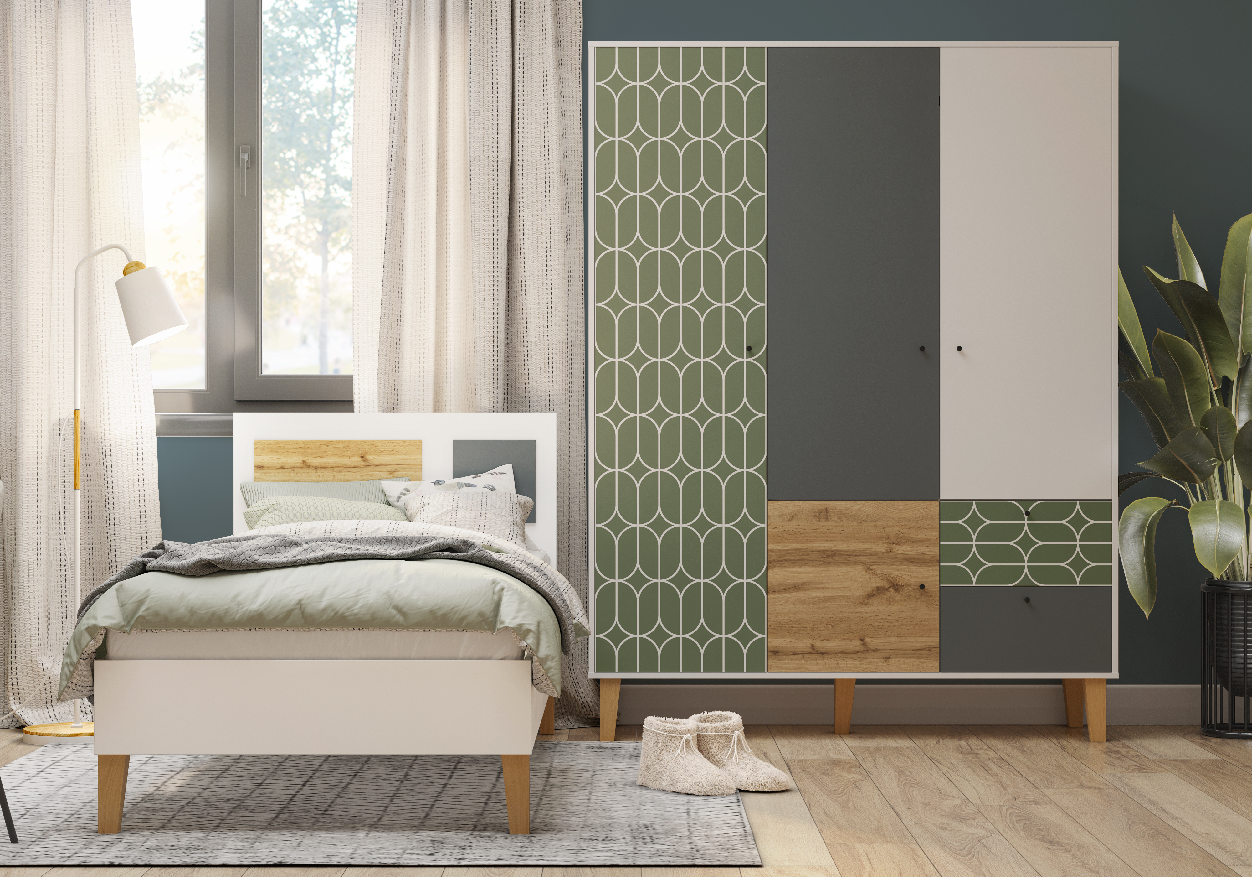 "Овалы". Корпус и внутреннее наполнение - Белые, Фасады: Дуб Вотан, Олива с УФ-печатью "Овалы", Белый, Темно-серый. Корпус и фасады из ЛДСП 16 мм, Опора сращенный массив Березы, высота - 18 см (5 шт) Направляющие телескопические, Ручка-кнопка черная пластик, Задняя стенка и дно ящика ХДФ врезная белая, Петля полунакладная с доводчиком, "Характеристики