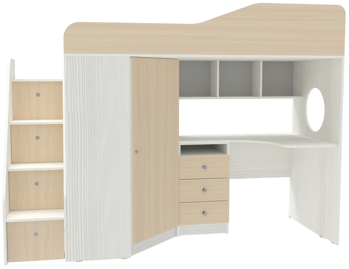 Кадет 1 с универсальной лестницей Белое Дерево Дуб Молочный