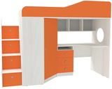 Вы можете купить Кровать-чердак КарИВи Кадет 1 с универсальной лестницей Белое Дерево Оранжевый оптом в нашем магазине, предложим цену с оптовой скидкой.