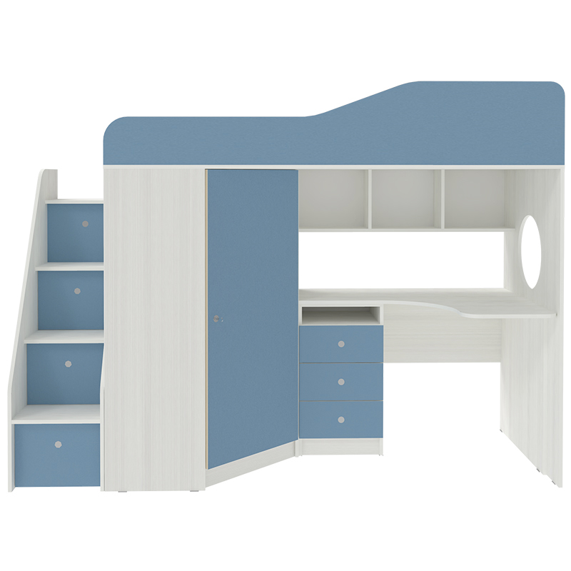 Вы можете купить Кровать-чердак КарИВи Кадет 1 с универсальной лестницей Белое Дерево Светло-синий, голубой оптом в нашем магазине, предложим цену с оптовой скидкой.