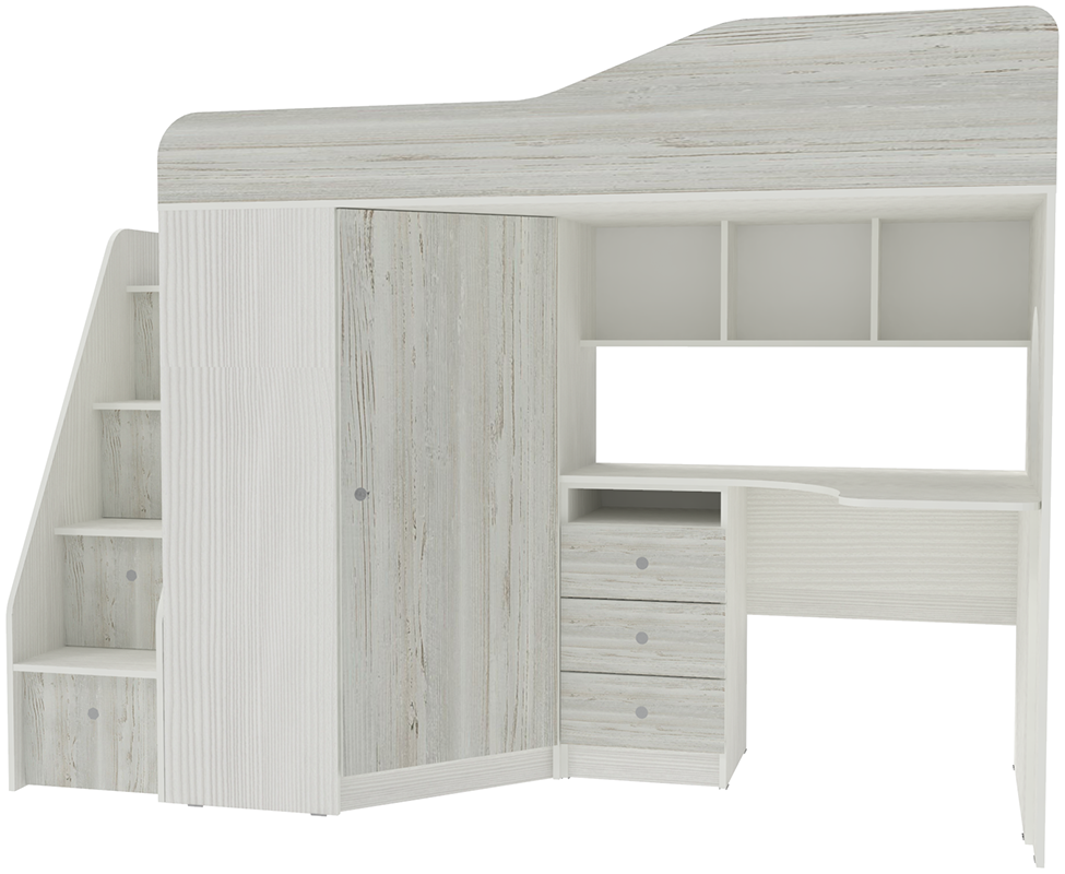 Вы можете купить Кровать-чердак КарИВи Кадет 1 с универсальной лестницей Белое Дерево Винтерберг оптом в нашем магазине, предложим цену с оптовой скидкой.
