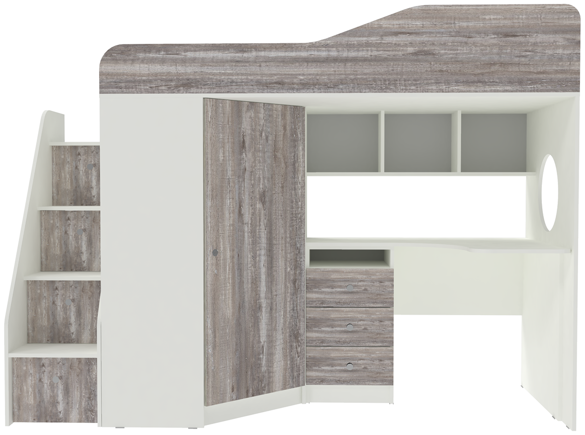 Вы можете купить Кровать-чердак КарИВи Кадет 1 с универсальной лестницей Белый Бетон оптом в нашем магазине, предложим цену с оптовой скидкой.