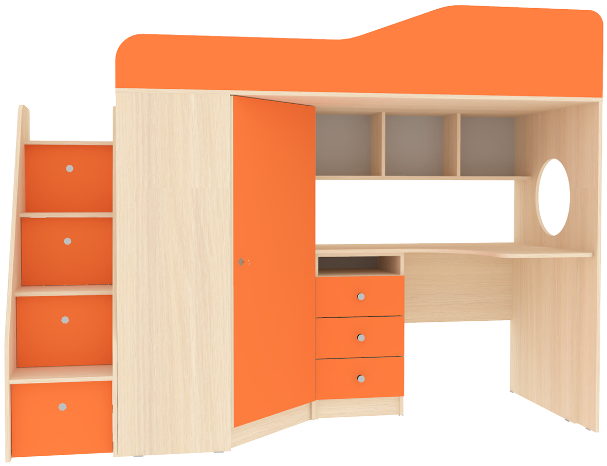 Вы можете купить Кровать-чердак КарИВи Кадет 1 с универсальной лестницей Дуб Молочный Оранжевый оптом в нашем магазине, предложим цену с оптовой скидкой.