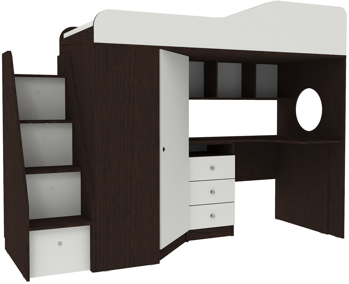 Вы можете купить Кровать-чердак КарИВи Кадет 1 с универсальной лестницей Венге Белый оптом в нашем магазине, предложим цену с оптовой скидкой.