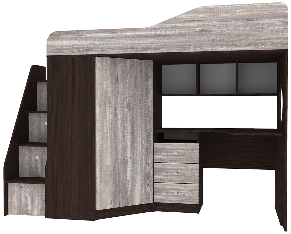 Вы можете купить Кровать-чердак КарИВи Кадет 1 с универсальной лестницей Венге Бетон оптом в нашем магазине, предложим цену с оптовой скидкой.