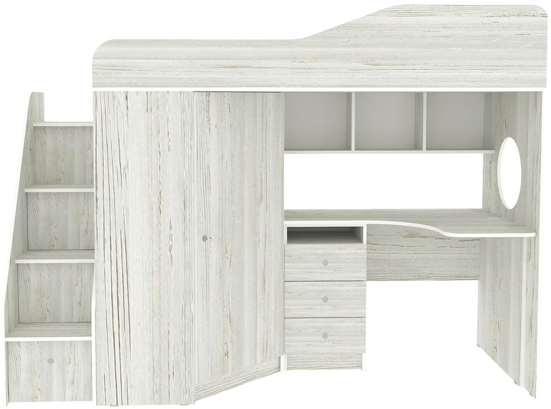 Кровать чердак Кадет 1 оснащен одним спальным местом, лестницей со ступенями в виде ящиков для хранения игрушек, письменным столом с тремя выдвижными ящиками под столешницей, полкой над столешницей и угловым шкафом для одежды. Данная модель подойдет как для детей младших классов, так и для детей более старшего возраста. Такая модель кровати поразит вас своей компактностью, вместительностью и практичностью. Комплектация: - Кровать чердак ( спальное место 80 х 190 см), размеры (Д*Г*В): 1932*832*1716 мм - Встроенный угловой шкаф с полками и штангой для одежды - Письменный стол с тумбой под столом - Лестница с ящиками - Стеллаж для книг под спальным местом Основные параметры: - Кроватный модуль, размеры (Д*Г*В): 2332*832*1716 мм - Спальное место: 800*1900 мм - Угловой шкаф, размеры (Д*Г*В): 832*832*1350 мм - Стол, размеры (Д*Г*В): 1100*740*735 мм - Высота борта: 350 мм - Рекомендованная высота матраса: 100-150 мм Материалы, используемые при изготовлении:Ламинированная ДСП, края лестницы, борта кровати декорированы противоударной кромкой ПВХ.На цветных фасадах: цвет кромки - бежевый. Модель универсальна - сторона определяется при сборке. Матрасы в комплект не входят - приобретаются отдельно.Характеристики