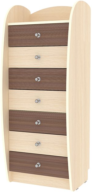 Комод высокий Малыш обладает красивым и интересным исполнением. Красивая, забавная, безопасная - именно такая мебель должна стоять в детской у Вашего малыша. Важнейшим качеством детской мебели является прочность, а мягкие и красочные цвета будут радовать Вас и Вашего малыша. Мебель изготовлена из ЛДСП. Борта декорированы противоударной кромкой ПВХ. На цветных фасадах светло-бежевая кромка.Характеристики