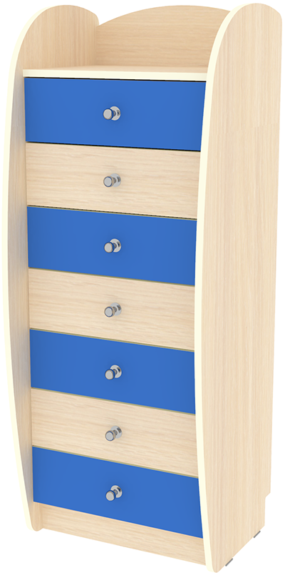 Комод высокий Малыш обладает красивым и интересным исполнением. Красивая, забавная, безопасная - именно такая мебель должна стоять в детской у Вашего малыша. Важнейшим качеством детской мебели является прочность, а мягкие и красочные цвета будут радовать Вас и Вашего малыша. Мебель изготовлена из ЛДСП. Борта декорированы противоударной кромкой ПВХ. На цветных фасадах светло-бежевая кромка.Характеристики