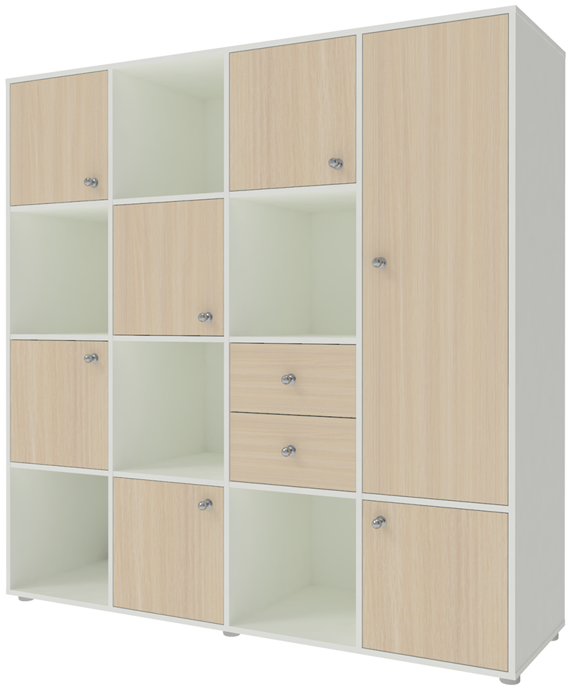 Стеллаж Джерри 2 - удобный, функциональный, красочный, оригинальный Размер всего стеллажа: 1600х1600х500мм. Шкаф1165х375х500мм. внутри расположена штанга. Материалы: Мебель изготовлена из ЛДСП. Борта декорированы противоударным кантом. У цветных фасадов светло-бежевая кромка. Модель универсальна - сторона определяется при сборке.Характеристики