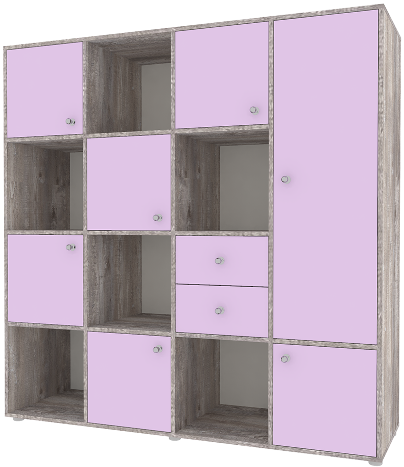 Стеллаж Джерри 2 - удобный, функциональный, красочный, оригинальный Размер всего стеллажа: 1600х1600х500мм. Шкаф1165х375х500мм. внутри расположена штанга. Материалы: Мебель изготовлена из ЛДСП. Борта декорированы противоударным кантом. У цветных фасадов светло-бежевая кромка. Модель универсальна - сторона определяется при сборке.Характеристики