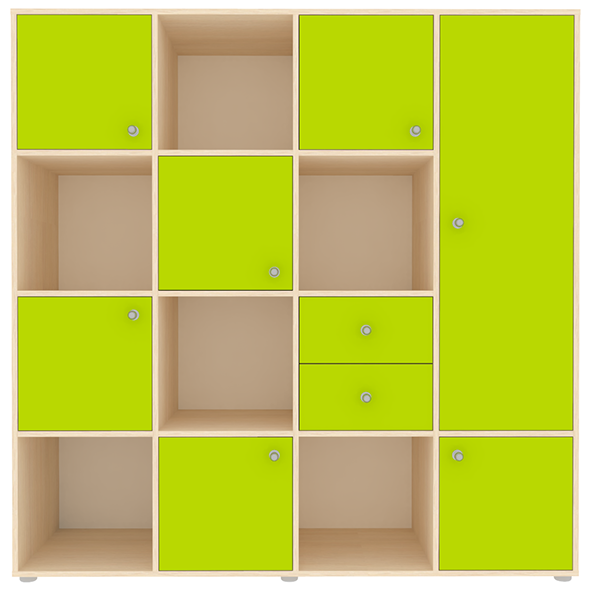 Стеллаж Джерри 2 - удобный, функциональный, красочный, оригинальный Размер всего стеллажа: 1600х1600х500мм. Шкаф1165х375х500мм. внутри расположена штанга. Материалы: Мебель изготовлена из ЛДСП. Борта декорированы противоударным кантом. У цветных фасадов светло-бежевая кромка. Модель универсальна - сторона определяется при сборке.Характеристики