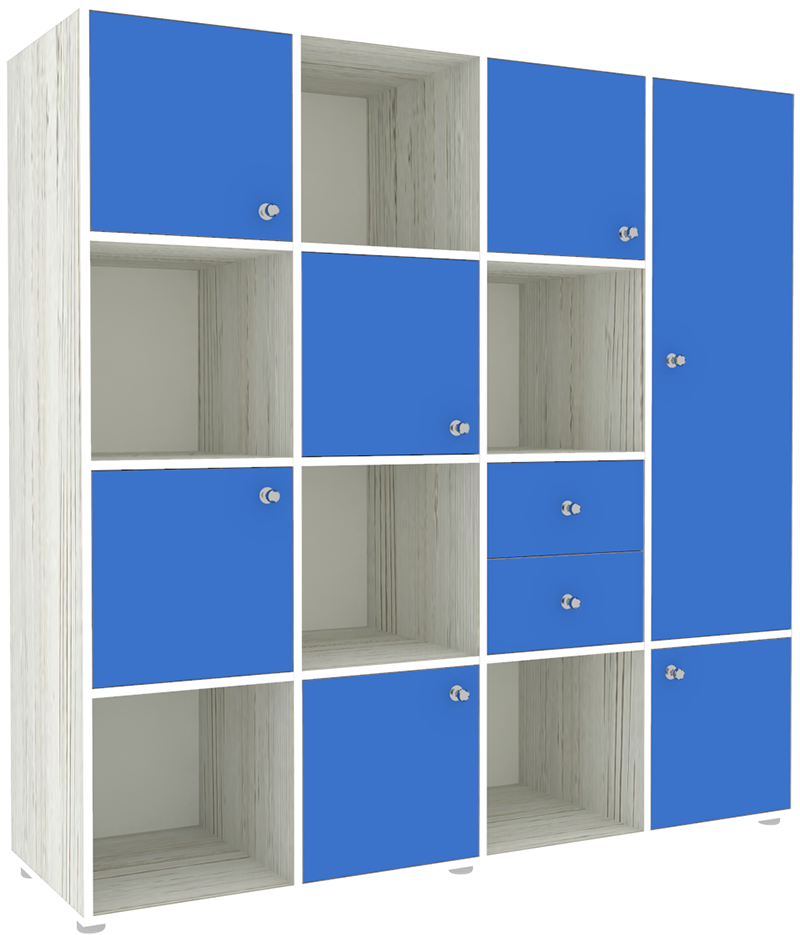 Стеллаж Джерри 2 - удобный, функциональный, красочный, оригинальный Размер всего стеллажа: 1600х1600х500мм. Шкаф1165х375х500мм. внутри расположена штанга. Материалы: Мебель изготовлена из ЛДСП. Борта декорированы противоударным кантом. У цветных фасадов светло-бежевая кромка. Модель универсальна - сторона определяется при сборке.Характеристики