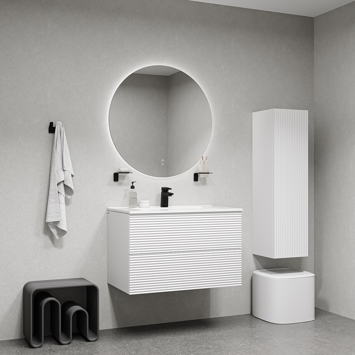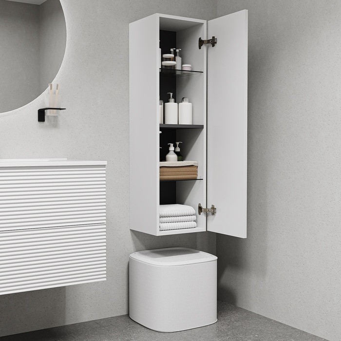 Подвесной пенал для ванной комнаты Bild – красивый дизайн с вертикальной фрезеровкой в сочетании с классическим белым цветом, удобством и практичностью. Универсальная ориентация: пенал можно подвесить так, чтобы дверки открывались в удобную вам сторону (пенал можно перевернуть на 180 градусов, при этом перевешивать дверцы не нужно). • Материал фасадов – МДФ с покрытием ПВХ-пленкой. Она разработана для использования в помещениях с высокой влажностью и сохранит первоначальный вид мебели надолго (при должном уходе). Материал боковин – МДФ. • Стеклянные полки (толщина 5 мм) надежно фиксируются специальными креплениями, что предотвращает риск их случайного повреждения. • Можно самостоятельно выбрать, куда будет открываться дверка: корпус пенала оборачиваемый, поэтому универсальный. • Современный механизм открытия Push-to-Open – открывается нажатием на фасад. • Надежная фурнитура рассчитана на более 10 лет исправной работы. • В комплекте крепеж для монтажа пенала. Гарантия на мебель IDDIS® – 3 года. (с) Авторский текст, октябрь 2024 г.Инструкции