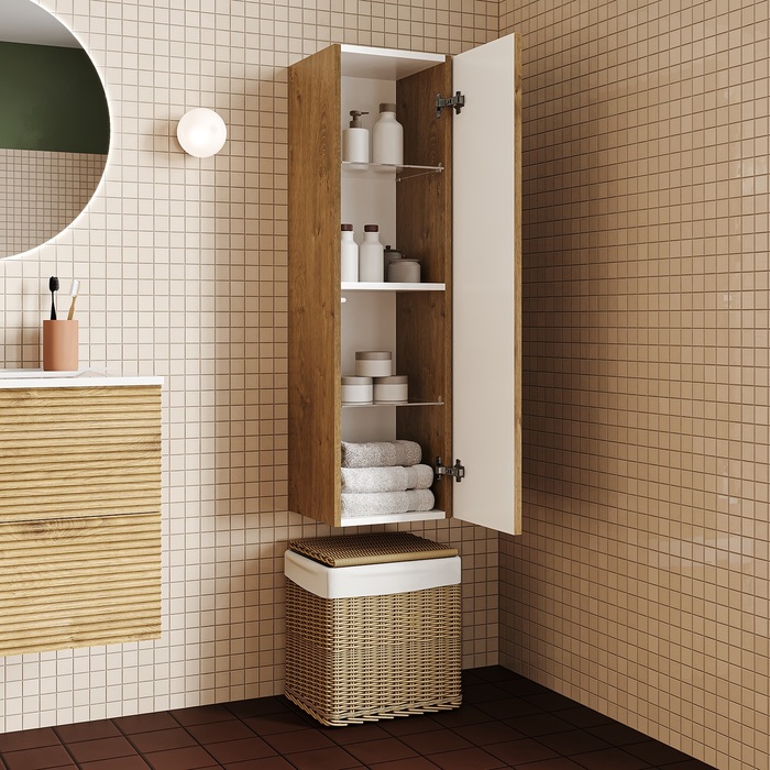 Подвесной пенал для ванной комнаты Bild – красивый дизайн со структурной вертикальной фрезеровкой в сочетании с теплым оттенком дуба, удобством и практичностью. Универсальная ориентация: пенал можно подвесить так, чтобы дверки открывались в удобную вам сторону (пенал можно перевернуть на 180 градусов, при этом перевешивать дверцы не нужно). - Материал фасадов – МДФ с покрытием ПВХ-пленкой. Она разработана для использования в помещениях с высокой влажностью и сохранит первоначальный вид мебели надолго (при должном уходе). Материал боковин – ЛДСП. - Стеклянные полки (толщина 5 мм) надежно фиксируются специальными креплениями, что предотвращает риск их случайного повреждения. - Можно самостоятельно выбрать, куда будет открываться дверка: корпус пенала оборачиваемый, поэтому универсальный. - Современный механизм открытия Push-to-Open – открывается нажатием на фасад. - Надежная фурнитура рассчитана на 30 000 открываний – это более 10 лет исправной работы. - В комплекте крепеж для монтажа пенала. Гарантия на мебель IDDIS® – 3 года. (с) Авторский текст, июль 2024 г.Инструкции