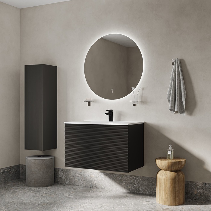 Подвесной пенал для ванной комнаты Bild – красивый дизайн с вертикальной фрезеровкой в сочетании с популярным темно-серым цветом, удобством и практичностью. Универсальная ориентация: пенал можно подвесить так, чтобы дверки открывались в удобную вам сторону (пенал можно перевернуть на 180 градусов, при этом перевешивать дверцы не нужно). • Материал фасадов – МДФ с покрытием ПВХ-пленкой. Она разработана для использования в помещениях с высокой влажностью и сохранит первоначальный вид мебели надолго (при должном уходе). Материал боковин – МДФ. • Стеклянные полки (толщина 5 мм) надежно фиксируются специальными креплениями, что предотвращает риск их случайного повреждения. • Можно самостоятельно выбрать, куда будет открываться дверка: корпус пенала оборачиваемый, поэтому универсальный. • Современный механизм открытия Push-to-Open – открывается нажатием на фасад. • Надежная фурнитура рассчитана на более 10 лет исправной работы. • В комплекте крепеж для монтажа пенала. Гарантия на мебель IDDIS® – 3 года. (с) Авторский текст, октябрь 2024 г.Инструкции