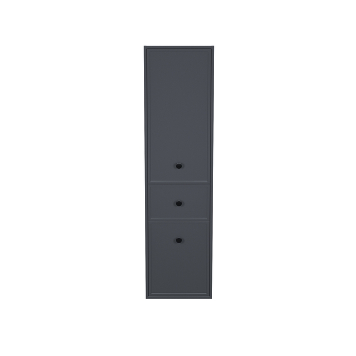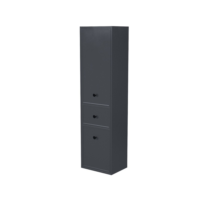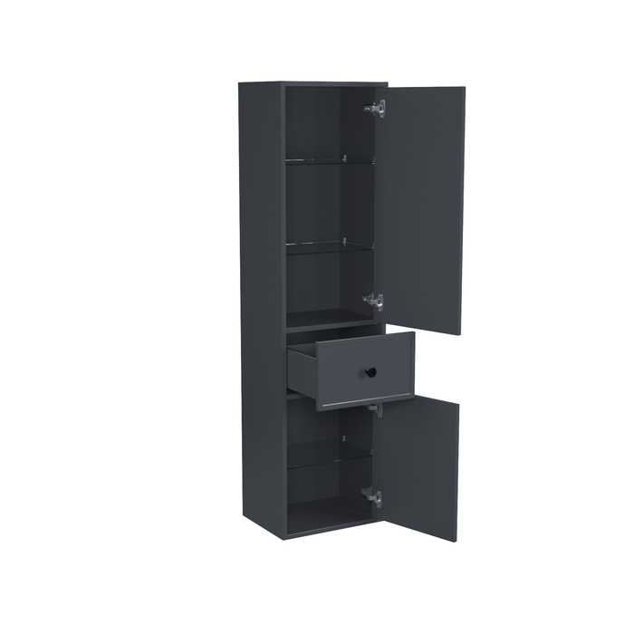 Подвесной пенал Torr трендового темно-серого цвета сочетает в себе узнаваемый стиль и практичность популярного скандинавского дизайна. Четкие формы пенала, фасады с декоративной филенкой, круглые ручки смотрятся гармонично и впишутся в любой современный интерьер. • Удобный выдвижной ящик создает пространство для хранения нужных мелочей. Внутри ящик графитового цвета – стильно и практично. • Стеклянные полки надежно фиксируются специальным механизмом, что предотвращает риск их случайного повреждения. • Покрытие качественной влагостойкой пленкой, разработанной для использования в помещениях с высокой влажностью, сохранит первоначальный вид мебели надолго (при должном уходе). • Надежная фурнитура Hettich рассчитана на 30 000 открываний – это более 10 лет исправной работы. Гарантия на мебель IDDIS® – 3 года. (с) Авторский текст, сентябрь 2023 г.Инструкции