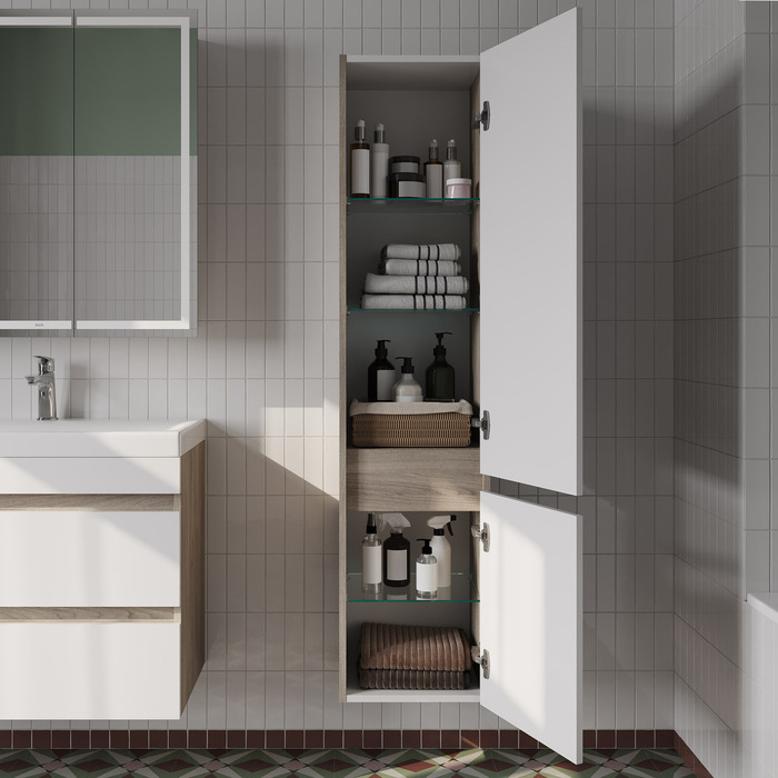 Подвесной пенал для ванной комнаты Zodiac – удобство и практичность в сочетании с лаконичным скандинавским дизайном. Универсальная ориентация: пенал можно подвесить так, чтобы дверки открывались в удобную вам сторону (пенал можно перевернуть на 180 градусов, при этом перевешивать дверцы не нужно). • Продуманное хранение: в большом верхнем отсеке две стеклянных полки, в маленьком нижнем – одна с возможностью регулировки по высоте. • Корпус сделан из влагостойкой ЛДСП в уютном цвете «ясень-шимо», фасад – из влагостойкой ЛДСП, покрыты несколькими слоями белоснежной эмали. Такое качественное исполнение обеспечит долгий срок службы мебели во влажном помещении ванной (при соблюдении рекомендаций по уходу). • Дверцы с механизмом плавного доведения закрываются плавно и бесшумно. Интегрированные ручки. Фурнитура рассчитана на 30 000 открываний, что составляет более 10 лет исправной работы. Гарантия на мебель IDDIS® – 3 года. (с) Авторский текст, апрель 2023 г.Инструкции