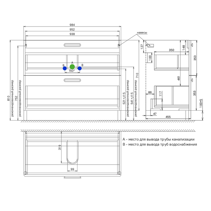 Вместительная тумба с плоским фарфоровым умывальником из популярной коллекции мебели Brick станет настоящим украшением для ванных комнат различной планировки в современном стиле. Сочетание белого глянца и сатиновых ручек делает коллекцию особенной. Напольная тумба Brick – невероятно удобное решение для тех, кому нужна модель с увеличенной вместительностью для хранения тяжелых предметов: больших пакетов со стиральным порошком и емкостей с бытовой химией. • Входящий в комплект умывальник (арт. 0101000i28) из качественного фарфора отличается высокой прочностью и простотой в уходе – он не задерживает загрязнения и неприятные запахи, надолго сохраняя первозданную белизну. • Два выдвижных ящика закрываются плавно и бесшумно благодаря высококачественным скрытым направляющим с доводчиками. • Фурнитура мебели IDDIS® рассчитана на 30 000 открываний, что составляет более 10 лет исправной работы. • Сифон приобретается отдельно. Подходят сифоны IDDIS® арт. 900BVG0010VD, 902BV750VD, 900B000010VD (выпуск приобретается отдельно). Гарантия на мебель IDDIS® – 3 года. (с) Авторский текст, октябрь 2021 г.Инструкции