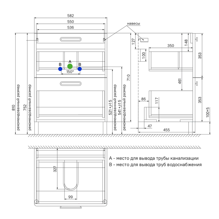 Ящики с механизмом плавного доведения, плоский умывальник