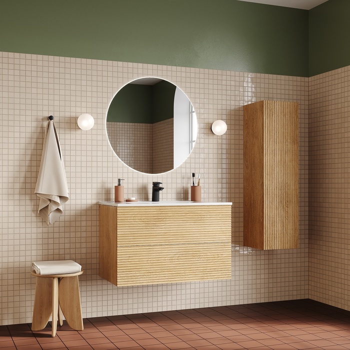 Тумба с умывальником IDDIS Bild, подвесная, 80 см, дуб светлый, BIL80V0i95K
