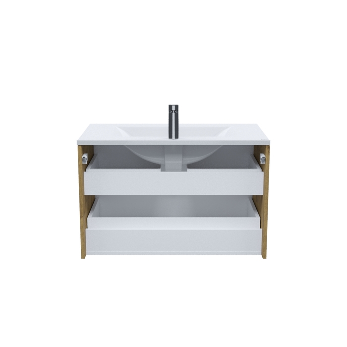 Вместительная подвесная тумба для ванной комнаты Bild с умывальником и ящиками – красивый дизайн со структурной горизонтальной фрезеровкой в сочетании с теплым оттенком дуба, удобством и практичностью. - Материал фасада – МДФ с покрытием ПВХ-пленкой. Она разработана для использования в помещениях с высокой влажностью и сохранит первоначальный вид мебели надолго (при должном уходе). Материал боковин – ЛДСП. - Керамический умывальник с высоким бортом и большой вместительной чашей в комплекте. Удобен для гигиенических и хозяйственных нужд. - Два ящика с направляющими скрытого монтажа. Фурнитура рассчитана на более 10 лет исправной работы. - Современный механизм открытия Push-to-Open – открывается нажатием на фасад. - В комплекте крепеж для монтажа тумбы. - Сифон приобретается отдельно. Подходят сифоны IDDIS® арт. 900BVG0010VD, 902BV750VD, 900B000010VD (выпуск приобретается отдельно). Гарантия на мебель IDDIS® – 3 года, на умывальник – 5 лет. (с) Авторский текст, июнь 2024 г.Инструкции