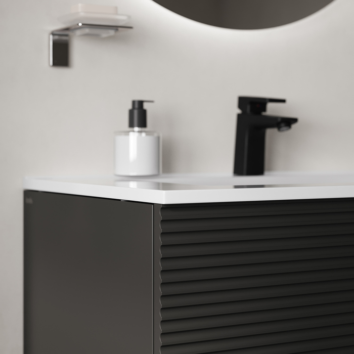Вместительная подвесная тумба для ванной комнаты Bild с умывальником и выдвижными ящиками – красивый дизайн с трендовой горизонтальной фрезеровкой в сочетании с популярным темно-серым цветом, удобством и практичностью. • Материал фасадов – МДФ с покрытием ПВХ-пленкой. Она разработана для использования в помещениях с высокой влажностью и сохранит первоначальный вид мебели надолго (при должном уходе). Материал боковин – МДФ. • Керамический умывальник с высоким бортом и большой вместительной чашей в комплекте. Удобен для гигиенических и хозяйственных нужд. • Два ящика с направляющими скрытого монтажа. Фурнитура рассчитана на более 10 лет исправной работы. • Современный механизм открытия Push-to-Open – открывается нажатием на фасад. • В комплекте крепеж для монтажа тумбы. • Сифон приобретается отдельно. Подходят сифоны IDDIS® арт. 900BVG0010VD, 902BV750VD, 900B000010VD (выпуск приобретается отдельно). Гарантия на мебель IDDIS® – 3 года, на умывальник – 5 лет. (с) Авторский текст, октябрь 2024 г.Инструкции