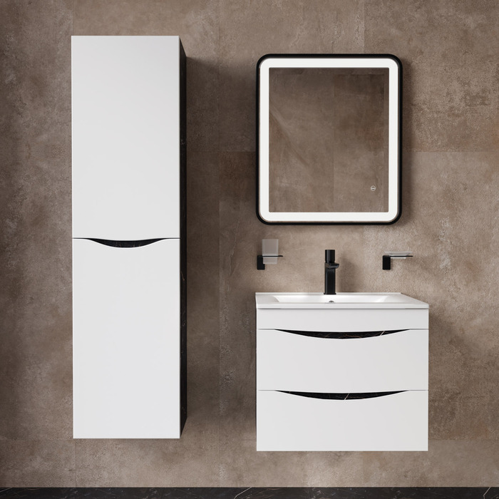 Тумба с умывальником IDDIS Cloud, подвесная, 60 см, белая/черный мрамор, CLO60B0i95K