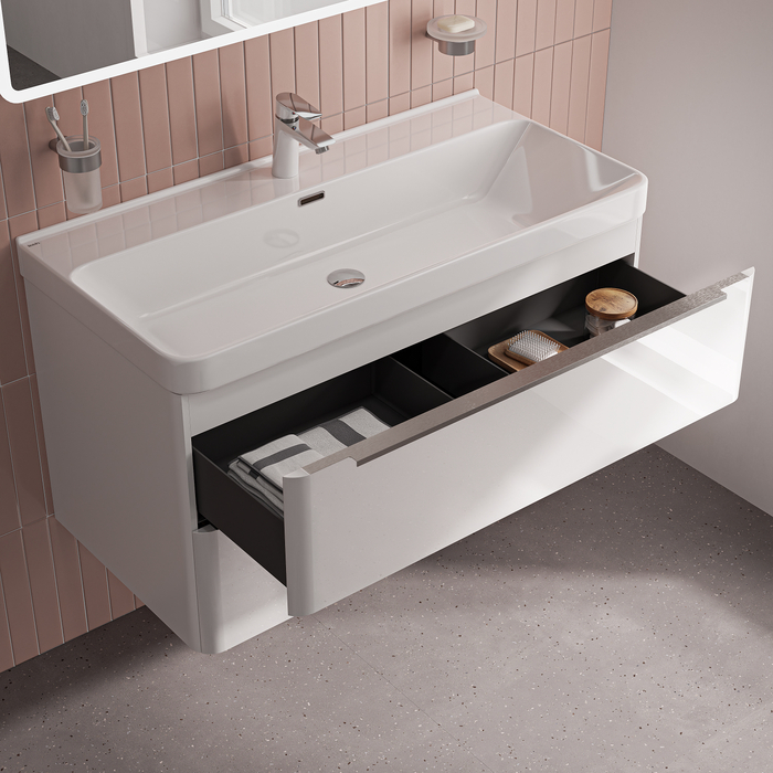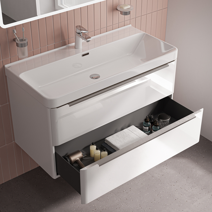 Вместительная подвесная тумба Cloud X с большим удобным умывальником и тонкими ручками – стильное решение для современной ванной и новое прочтение популярной серии Cloud. • Материал фасадов и боковин – МДФ с глянцевой эмалью. Такое качественное исполнение обеспечит долгий срок службы мебели во влажном помещении ванной (при соблюдении рекомендаций по уходу). • Тонкие ручки из анодированного алюминия с притупленными мягкими краями комфортны и безопасны даже для детей. • Керамический умывальник с глубокой и широкой чашей в комплекте удобен для гигиенических и хозяйственных нужд. Санитарная керамика не задерживает загрязнения и неприятные запахи, надолго сохраняя первозданную белизну. В комплекте 3 декоративных кольца перелива (чёрный матовый, белый матовый, глянцевый хром). • Два выдвижных ящика с увеличенным объёмом хранения закрываются плавно и бесшумно благодаря высококачественным скрытым направляющим с доводчиками. • Ящики полностью выдвигаются, что делает их практичными и удобными в использовании. • Тонкие боковины внутренних ящиков из водостойкого PVC выглядят эстетично и делают их более лёгкими. • Фурнитура мебели IDDIS® рассчитана на 30 000 открываний, что составляет более 10 лет исправной работы. • Усиленные навесы тумбы выдерживают до 130 кг нагрузки. Сифон приобретается отдельно. Подходят сифоны IDDIS® арт. 900BVG0010VD, 902BV750VD, 900B000010VD (выпуск приобретается отдельно). Гарантия на мебель IDDIS® – 3 года, на умывальник – 25 лет. (с) Авторский текст, январь 2026 г.Инструкции