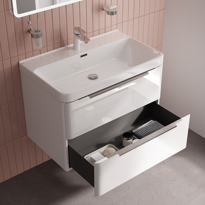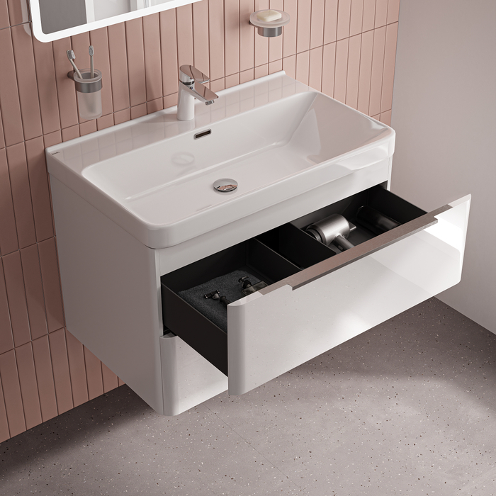 Вместительная подвесная тумба Cloud X с большим удобным умывальником и тонкими ручками – стильное решение для современной ванной и новое прочтение популярной серии Cloud. • Материал фасадов и боковин – МДФ с глянцевой эмалью. Такое качественное исполнение обеспечит долгий срок службы мебели во влажном помещении ванной (при соблюдении рекомендаций по уходу). • Тонкие ручки из анодированного алюминия с притупленными мягкими краями комфортны и безопасны даже для детей. • Керамический умывальник с глубокой и широкой чашей в комплекте удобен для гигиенических и хозяйственных нужд. Санитарная керамика не задерживает загрязнения и неприятные запахи, надолго сохраняя первозданную белизну. В комплекте 3 декоративных кольца перелива (чёрный матовый, белый матовый, глянцевый хром). • Два выдвижных ящика с увеличенным объёмом хранения закрываются плавно и бесшумно благодаря высококачественным скрытым направляющим с доводчиками. • Ящики полностью выдвигаются, что делает их практичными и удобными в использовании. • Тонкие боковины внутренних ящиков из водостойкого PVC выглядят эстетично и делают их более лёгкими. • Фурнитура мебели IDDIS® рассчитана на 30 000 открываний, что составляет более 10 лет исправной работы. • Усиленные навесы тумбы выдерживают до 130 кг нагрузки. Сифон приобретается отдельно. Подходят сифоны IDDIS® арт. 900BVG0010VD, 902BV750VD, 900B000010VD (выпуск приобретается отдельно). Гарантия на мебель IDDIS® – 3 года, на умывальник – 25 лет. (с) Авторский текст, январь 2026 г.Инструкции