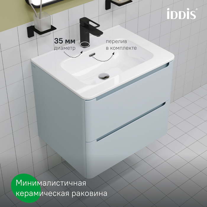 Тумба с умывальником IDDIS Edifice, подвесная, 60 см, голубой, EDI60B0i95K