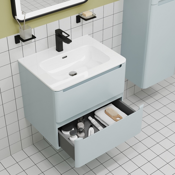 Компактная подвесная тумба с плоским умывальником Edifice в нежно-голубом оттенке – воплощение современного минимализма. Мягкие линии корпуса в сочетании с удобными интегрированными ручками выглядят свежо и актуально. Смотрится аккуратно, легко и не усложняет процесс уборки в ванной благодаря подвесной конструкции. • В комплекте умывальник (арт. 0106000i28) из качественного фарфора. Он отличается высокой прочностью и прост в уходе: не задерживает загрязнения и неприятные запахи, надолго сохраняя первозданную белизну. • Два выдвижных ящика закрываются плавно и бесшумно благодаря высококачественным скрытым направляющим с доводчиками немецкого производства. • Надежные крепления рассчитаны на большой вес и позволяют равномерно распределять нагрузку. • Фурнитура рассчитана на 30 000 открываний, что составляет более 10 лет исправной работы. Гарантия на мебель IDDIS® – 3 года. (с) Авторский текст, август 2023 г.Инструкции