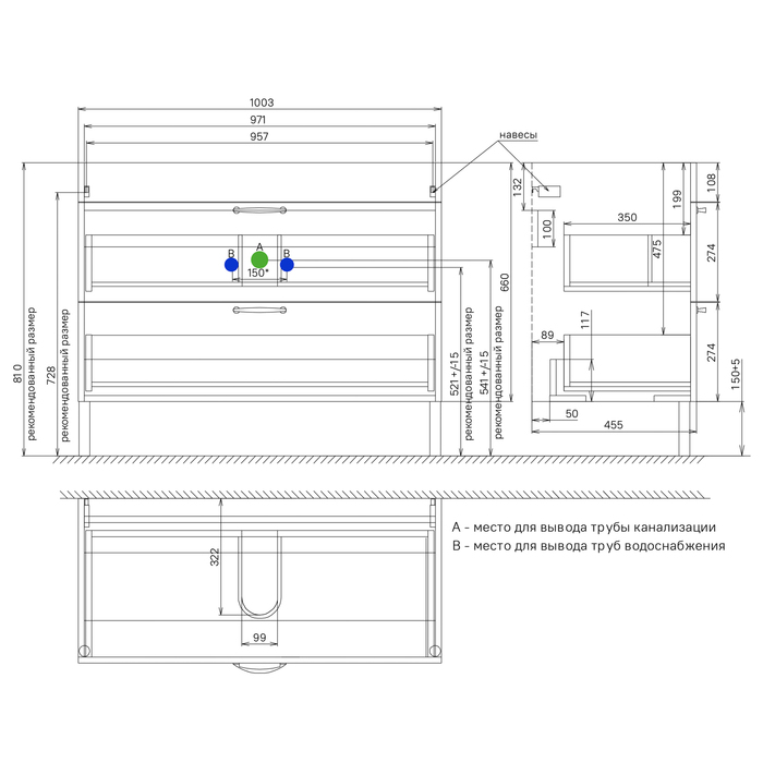 Комплектуется умывальником мебель