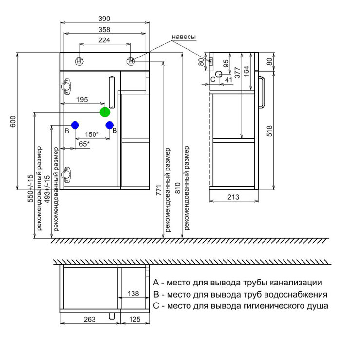 Тумба с умывальником для ванной комнаты IDDIS, подвесная. Размеры тумбы без умывальника: 213х390х600 мм (ДхШхВ). Размеры умывальника: 220х400 мм (ДхШ). Фасад ЛДСП 16 мм в эмали, боковины ЛДСП белый глянец. Одна распашная дверца, фальш-фасад, 2 открытые полки с правой стороны. Сбоку тумбы - отверстие для гигиенического душа с пластиковым кольцом. Петли с доводчиком. Упаковка: картон, пленка, пенопластовые уголки.Инструкции