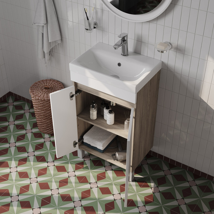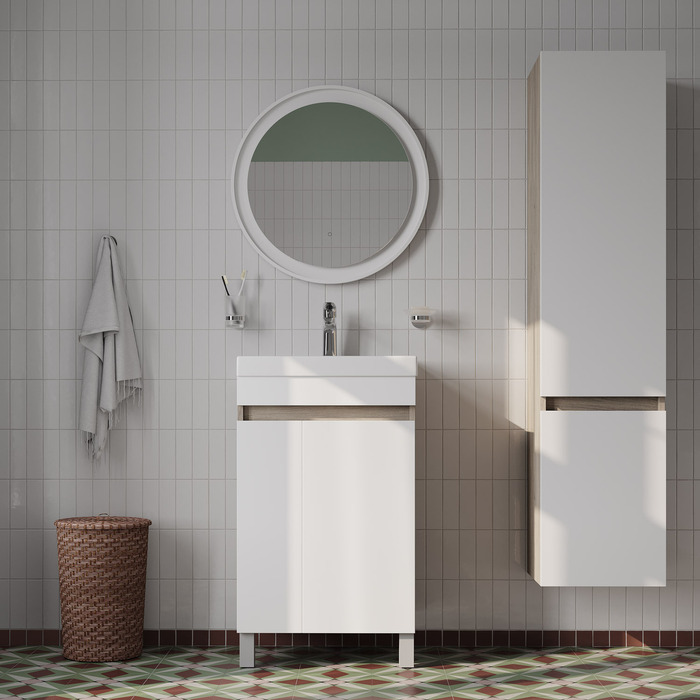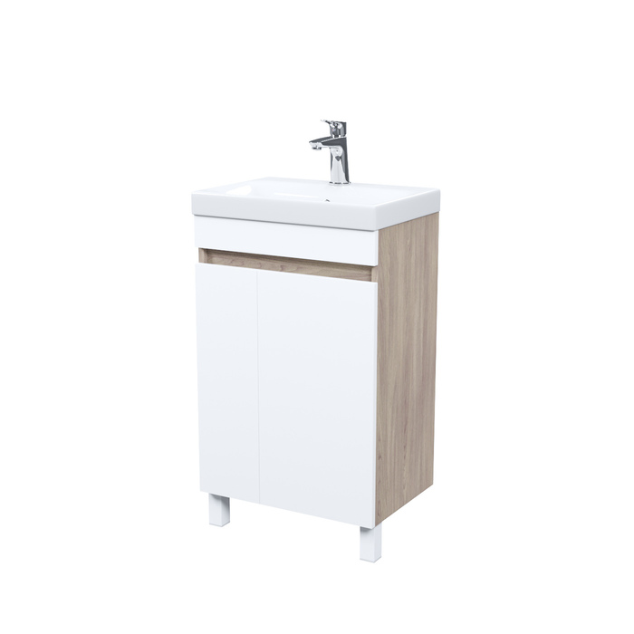 Тумба с умывальником напольная с дверцами IDDIS Zodiac, 50 см, белая/под дерево, ZOD5ADFi95K