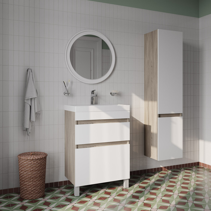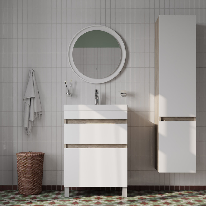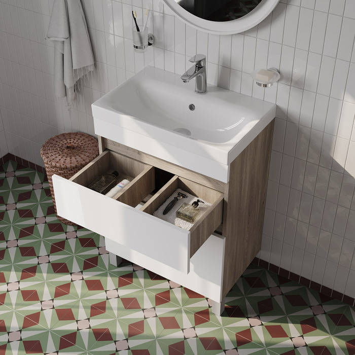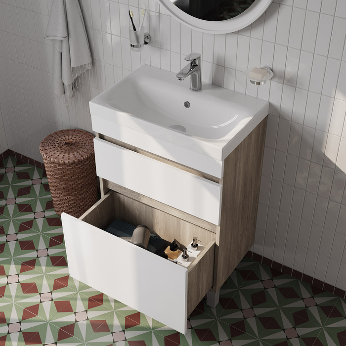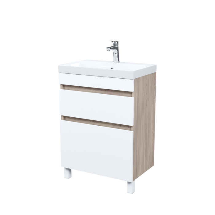 Тумба с умывальником напольная с ящиками IDDIS Zodiac, 60 см, белая/под дерево, ZOD6ABFi95K