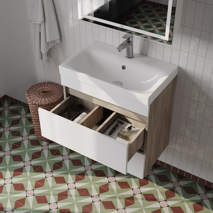 Тумба с умывальником подвесная с ящиками IDDIS Zodiac, 60 см, белая/под дерево, ZOD6AB0i95K