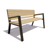 Материал Каркас выполнен из стальной профилированной трубы. Покрыт порошковой полимерной краской. Стандартный цвет по умолчанию – черный муар. Возможность выбора цвета по шкале RAL. Сиденье и спинка: Брус из хвойных пород древесины, обработан экологичными инновационными лакокрасочными материалами, что подтверждает Свидетельство ЕврАзЭС. Тип крепления: анкерный. Сечение бруса - 30*60 мм Вес: 34 кг Высота сиденья: 460 мм Ширина сиденья: 440 мм