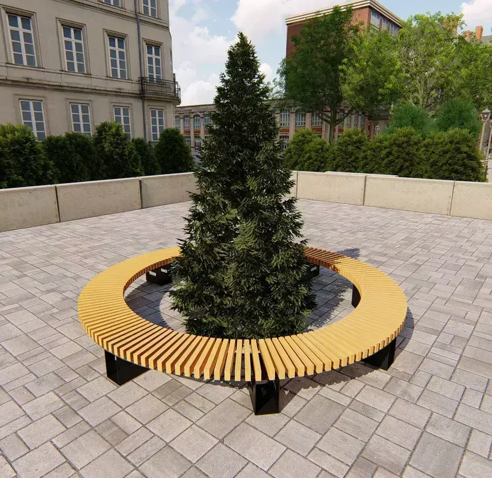 Садово-парковая скамейка «Сити» брус 30х60, сосна, круг 9425мм, лак