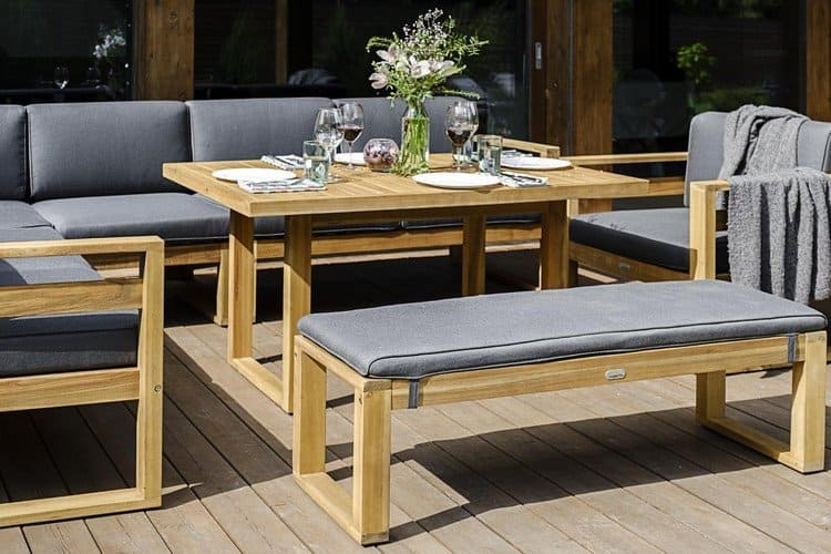 Прямые лаконичные линии мебели из коллекции Booka в сочетании теплого тона дерева и подушек в цвете темно-серый графит дают превосходные контрастные комплекты современной уличной мебели, которые по достоинству дополнят интерьер в стиле лофт или хайтек. Особенности: Скамья выполнена из МАССИВА ТИКА. Тик - это лиственное дерево твердых пород, которое происходит из высокогорья. Никакая другая древесина не обладает такой исключительной прочностью и долговечностью, как тик. Его уникальная текстура и кожистый запах обусловлены высоким содержанием масла. Эти характеристики в сочетании с высокой плотностью древесины предотвращают коробление и гниение, позволяя мебели оставаться на открытом воздухе в любых условиях без ухода или защитных средств. Древесина тика сертифицирована INDO TLAS - SVLK и FSC. Знак FSC - показатель того, что продукция происходит из леса, в котором ведется экологически и социально ответственное лесное хозяйство. Страна происхождения древесины: Индонезия. Анодированная фурнитура из нержавеющей стали. Подушка в комплекте, ткань подушки - олефин, цвет подушки темно-серый графит.Характеристики