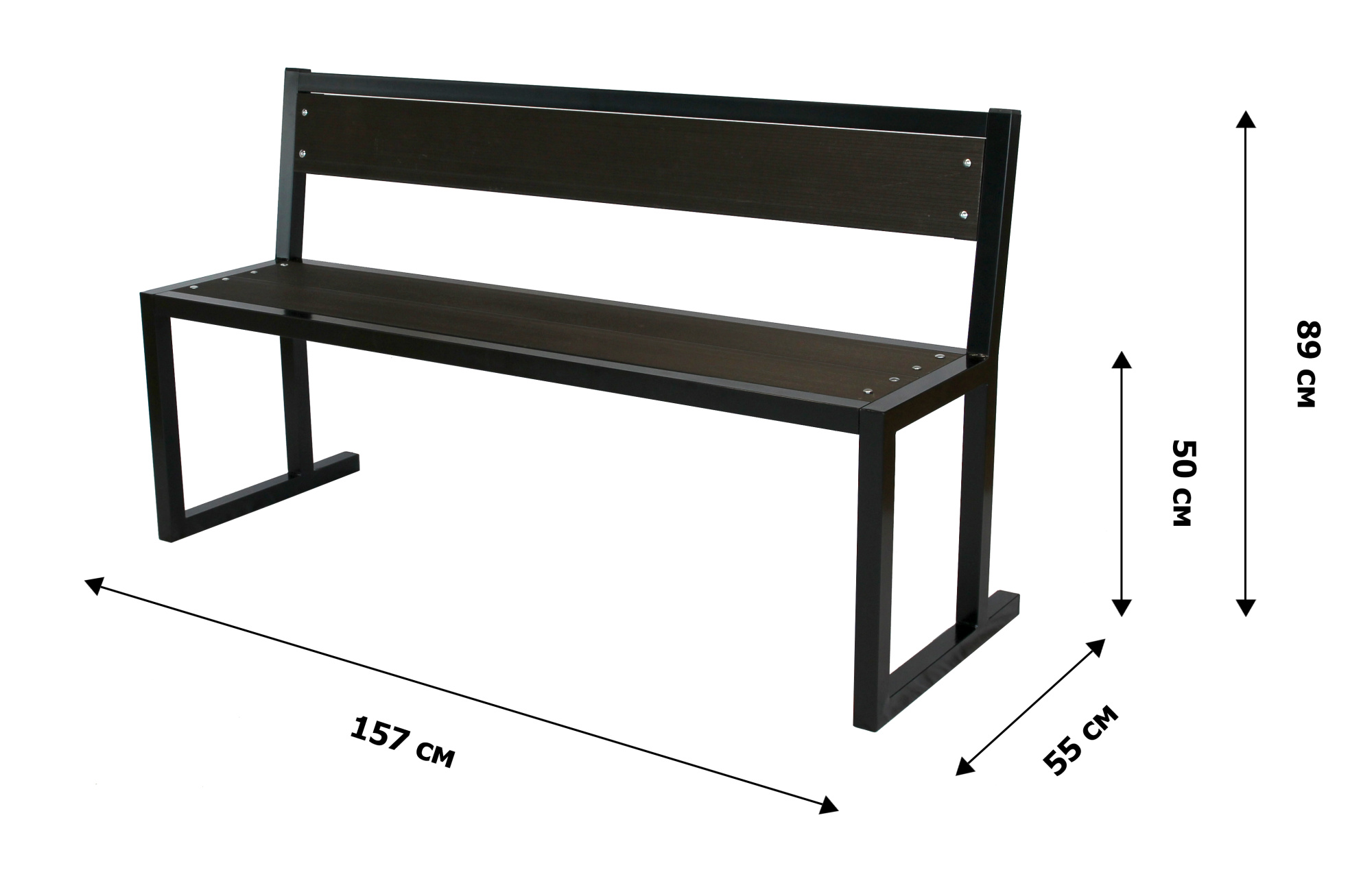 Габариты изделия (Ш/ГхДхВ) : 55х157х89 Материал каркаса : сталь Материал поверхности : ДПК Дополнительно : от пола до сиденья 50 см. Цвет ДПК тёмн-коричневый, текстура вельвет. Террасная доска (декинг) из ДПК на основе ПВХ. Обладает высокой стойкостью к истиранию, воздействию влаги и ультрафиолетовых излучений. Страна производства : РОССИЯХарактеристики