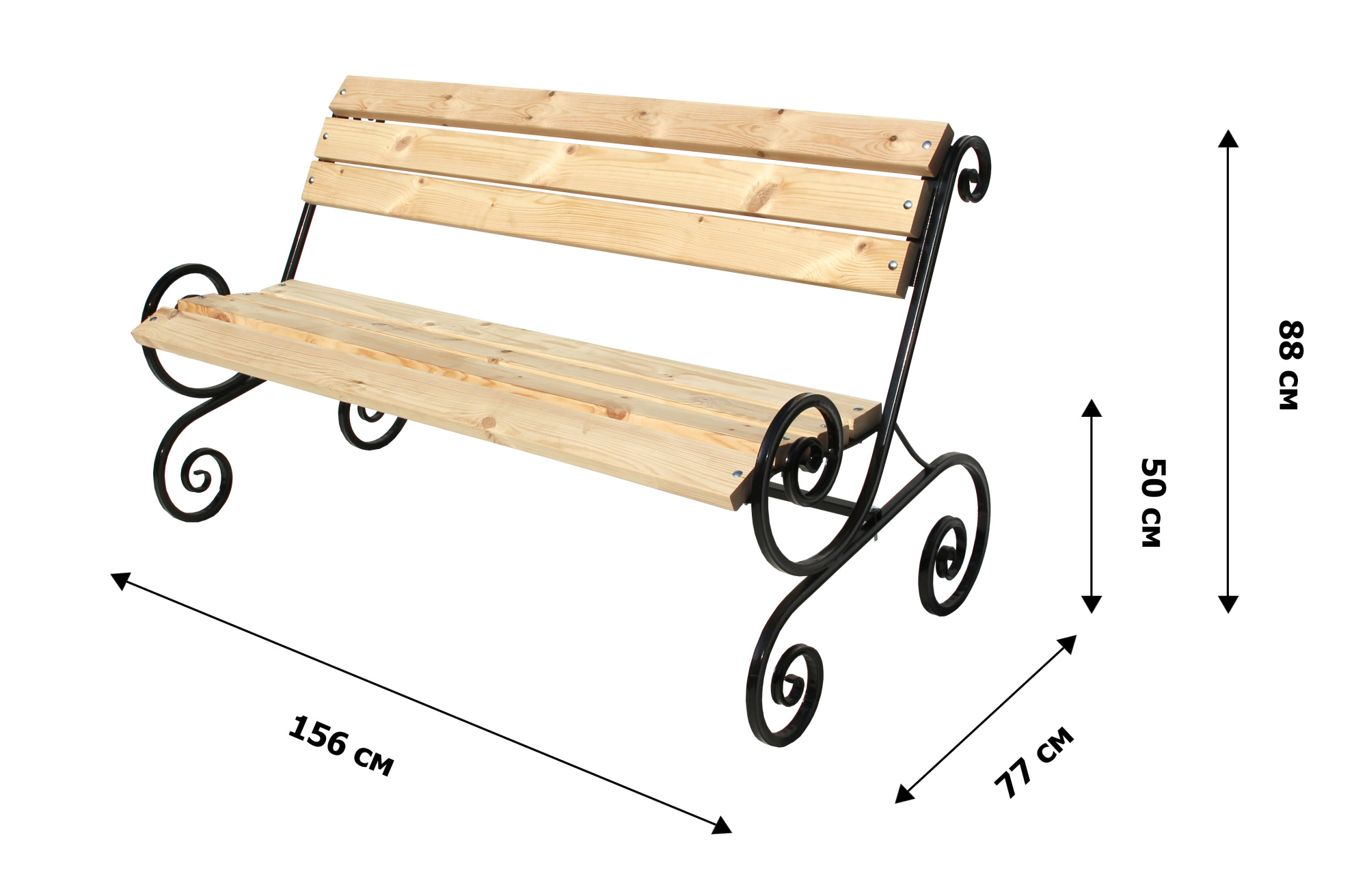 Габариты изделия (Ш/ГхДхВ) : 77х156х88 Материал каркаса : сталь Материал поверхности : дерево (Хвоя) Дополнительно : Деревянные элементы не окрашены, доска строганная Толщина металла 1.2 Толщина доски 3,5. Глубина сиденья 45 см Длина общая со стойками 156, длина 150. Страна производства : РОССИЯХарактеристики