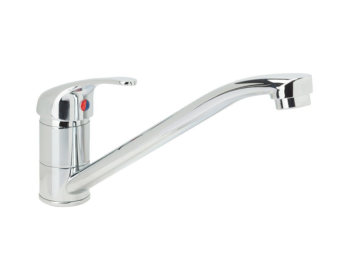 Смеситель кухонный однорычажный с низким поворотным изливом. Стандартное отверстие под смеситель. Гибкая подводка для воды в комплектацию не входит, приобретается отдельно.Характеристики