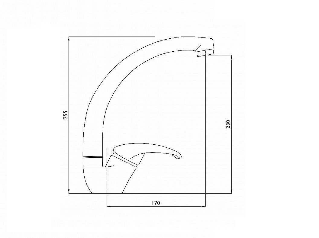 Смеситель кухонный однорычажный с высоким поворотным изливом. Стандартное отверстие под смеситель. Гибкая подводка для воды в комплектацию не входит, приобретается отдельно.