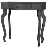 Подставка Берже 11 подойдет под классический интерьер квартиры или дома. Деревянная модель выполнена из МДФ, что обеспечивает прочность и долгий срок службы. Все детали покрыты защитной эмалью с теснением, передающим текстуру дерева. Важные вещи всегда будут под рукой в выдвижном ящике консоли. Благодаря металлическим направляющим он выдвигается плавно и бесшумно. Изделие оснащено потайными отсеками. Материалы: мдф, эмаль Упаковка: 85*46*15 см Вес: 15,6 кг Цвет: серый графитХарактеристики