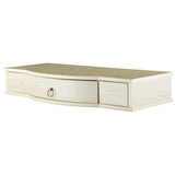 Подставка Берже 15 подойдет под классический интерьер квартиры или дома. Деревянное изделие выполнено из МДФ, что обеспечивает прочность и долгий срок службы. Все детали покрыты защитной эмалью с теснением, передающим текстуру дерева. Вместительный ящик станет отличным местом для хранения косметики или важных документов. В потайные отсеки по бокам модели можно разместить аксессуары и другие мелочи. Материалы: мдф, эмаль Упаковка: 87*40*15, 1 место Вес: 13,6 кг Цвет: слоновая костьХарактеристики
