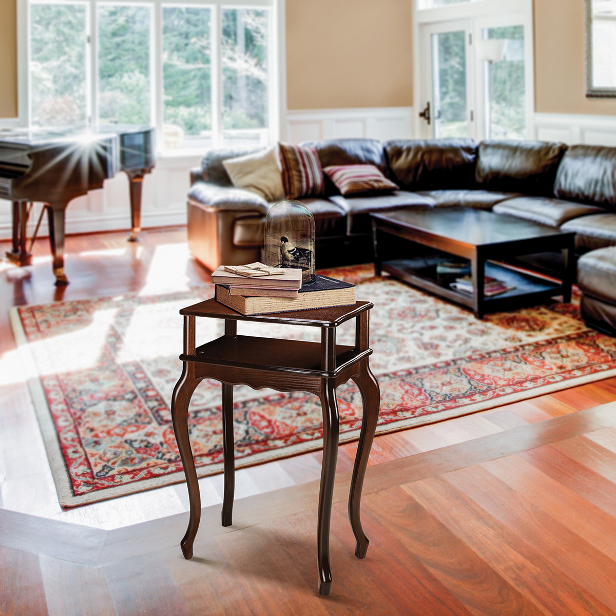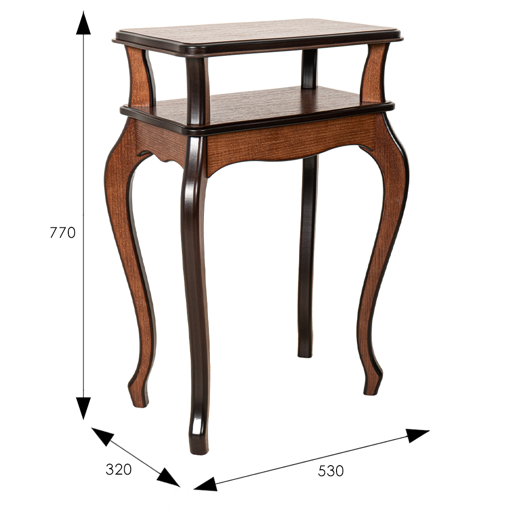 Классическая подставка Берже отлично дополнит традиционный интерьер. Сдержанный дизайн предмета мебели крайне эстетичен. Углы подставки сглажены, ножки изящно изогнуты. Кромку столешницы украшает аккуратный рельеф. Функциональная подставка может служить, как декоративная или цветочная. Полочки предмета мебели станут идеальным местом для телефона, книг, аксессуаров и важных мелочей. Универсальную подставку можно разместить в любой зоне дома, квартиры, дачи или офиса. Материалы: МДФ Упаковка: 67*37*11 см, 1 место Вес: 11,2 кг Цвет: дуб шампань, молочный дуб, орехХарактеристики