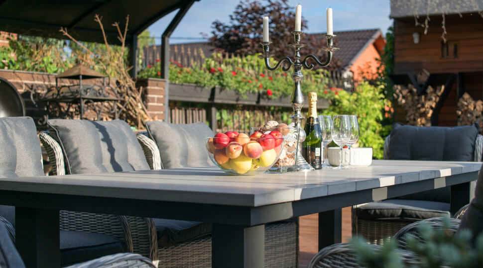 Большой обеденный стол Besta Fiesta ПАРКЛЭНД на 6-8 персон, серый