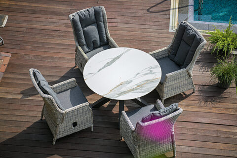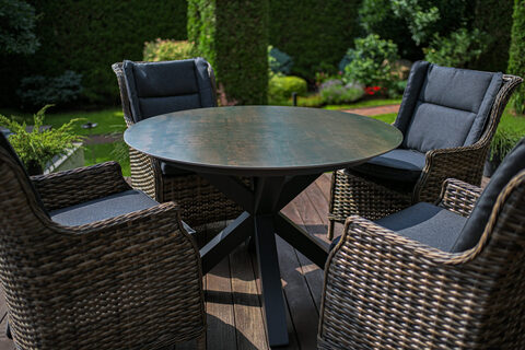 Столы со столешницей из спечённого камня Эстетика натурального камня. Надёжность современных технологий. Изысканный внешний вид, продуманная эргономика и абсолютная устойчивость к условиям эксплуатации — столы со столешницей из спечённого камня (sintered stone) становятся идеальным выбором для тех, кто ценит практичность, долговечность и дизайн. Этот материал нового поколения создан из 100% натурального сырья — минералов, полевых шпатов, кварца и оксидов. В отличие от кварцевых или акриловых аналогов, в составе спечённого камня нет смол, клеевых соединений, пластиковых примесей и химических связующих. Благодаря этому он полностью безопасен, экологичен и устойчив к любым внешним воздействиям. Преимущества, которые чувствуются в использовании каждый день: · Натуральный состав. Чистый минеральный продукт, не выделяющий вредных веществ даже при нагревании. Подходит для кухни, столовой зоны, террасы или открытых пространств. · Максимальная прочность. Поверхность устойчива к царапинам, ударам и механическим нагрузкам. Можно без опаски ставить тяжёлую посуду, посекать ножом или класть горячие предметы. · Термостойкость. Камень выдерживает высокие температуры без деформаций и повреждений. Идеально подходит для помещений с активной кухонной зоной и даже для использования на улице. · Влагостойкость и непористость. Спечённый камень не впитывает влагу и жидкости, а значит — не образует пятен, разводов и не боится проливаний. · Устойчивость к бытовой химии. Можно использовать любые моющие средства, включая кислоты и щёлочи. Столешница не тускнеет и не теряет внешнего вида со временем. · Гигиеничность. Благодаря плотной, непористой структуре на поверхности не развиваются бактерии, грибок и плесень. Это особенно важно для обеденных зон и кухонного пространства. · Экологичность. В процессе производства не используются токсичные добавки и синтетические компоненты. Материал полностью перерабатываем и безопасен для человека и окружающей среды. Универсальный дизайн — на любой вкус Спечённый камень позволяет воплощать самые разные визуальные решения. В ассортименте — разнообразие текстур и оттенков: от мраморной классики с мягкими прожилками до благородного графита, серого бетона, имитации шлифованного металла и даже дерева. Поверхность может быть матовой или полуглянцевой — в зависимости от модели. Такое разнообразие позволяет легко интегрировать стол в интерьер любой стилистики: · современный минимализм, · лофт, · скандинавский стиль, · экодизайн, · современная классика и др. Столы одинаково хорошо подходят для размещения внутри дома и на улице — на крытых верандах, террасах, в зоне отдыха у бассейна или в летней кухне. Устойчивость к УФ-лучам и перепадам температуры делает их надёжным решением даже при интенсивной эксплуатации на открытом воздухе. Функциональность и комфорт Каркас и ножки столов выполнены из прочных, устойчивых к коррозии материалов. Конструкция рассчитана на ежедневное использование и выдерживает значительные нагрузки. Продуманная геометрия делает столы удобными для размещения всей семьи или компании гостей. Сделано для жизни — на годы вперёд Столы из спечённого камня — это инвестиция в комфорт, эстетику и долговечность. Они не выходят из моды, сохраняют внешний вид спустя годы и не требуют сложного ух